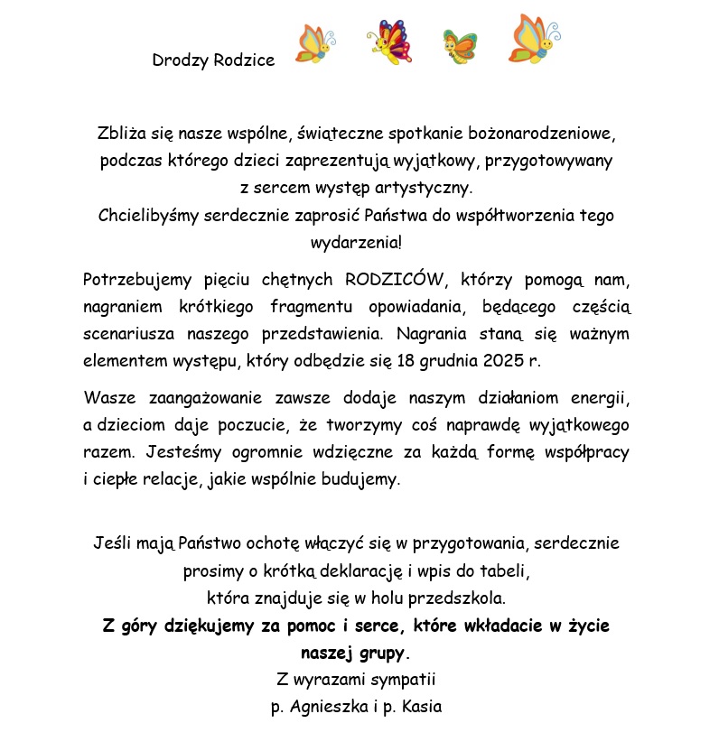 Więcej o nas GaleriaZobacz, co wydarzy sie w przedszkolu w najbliższym czasie.