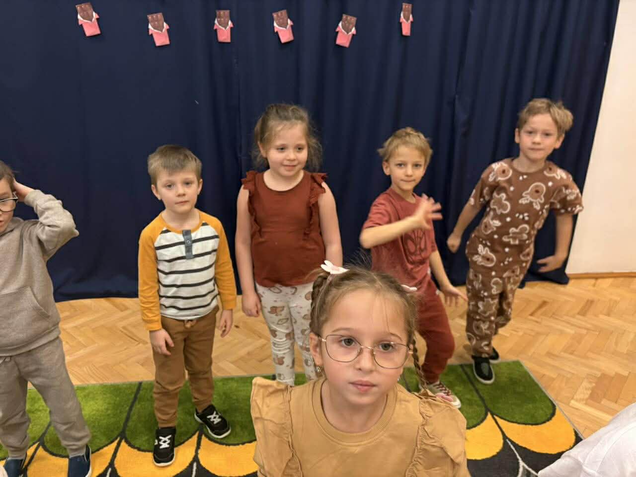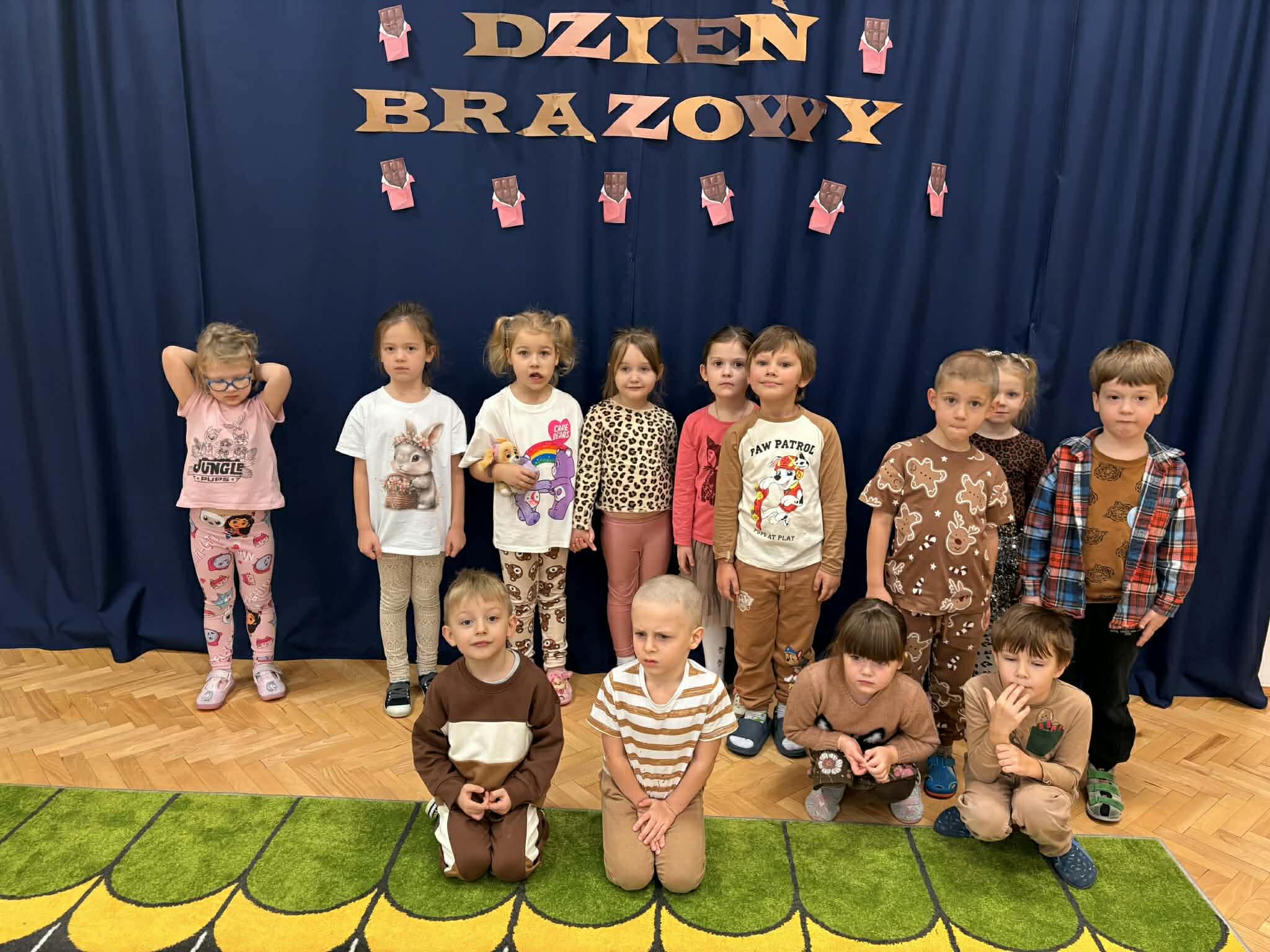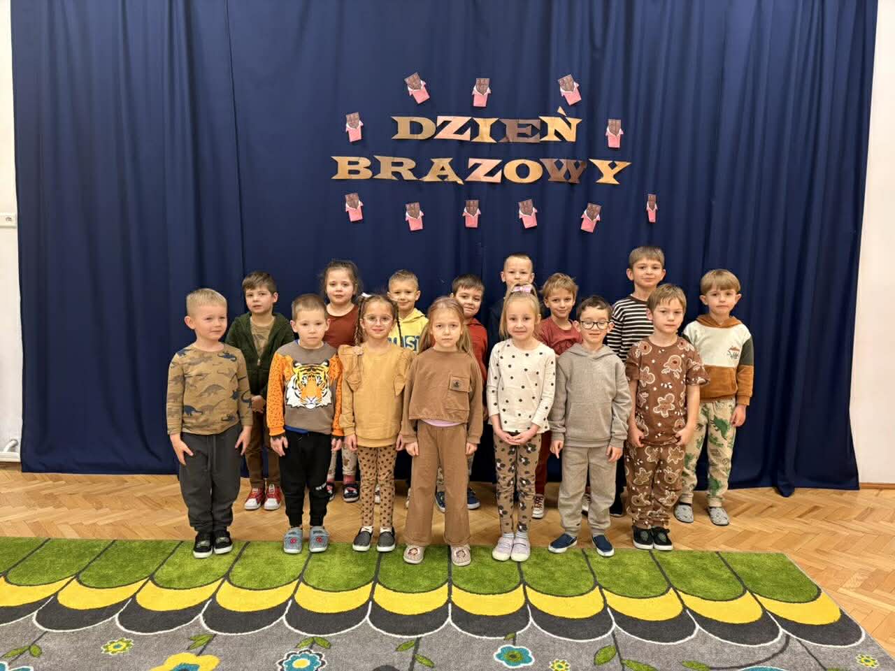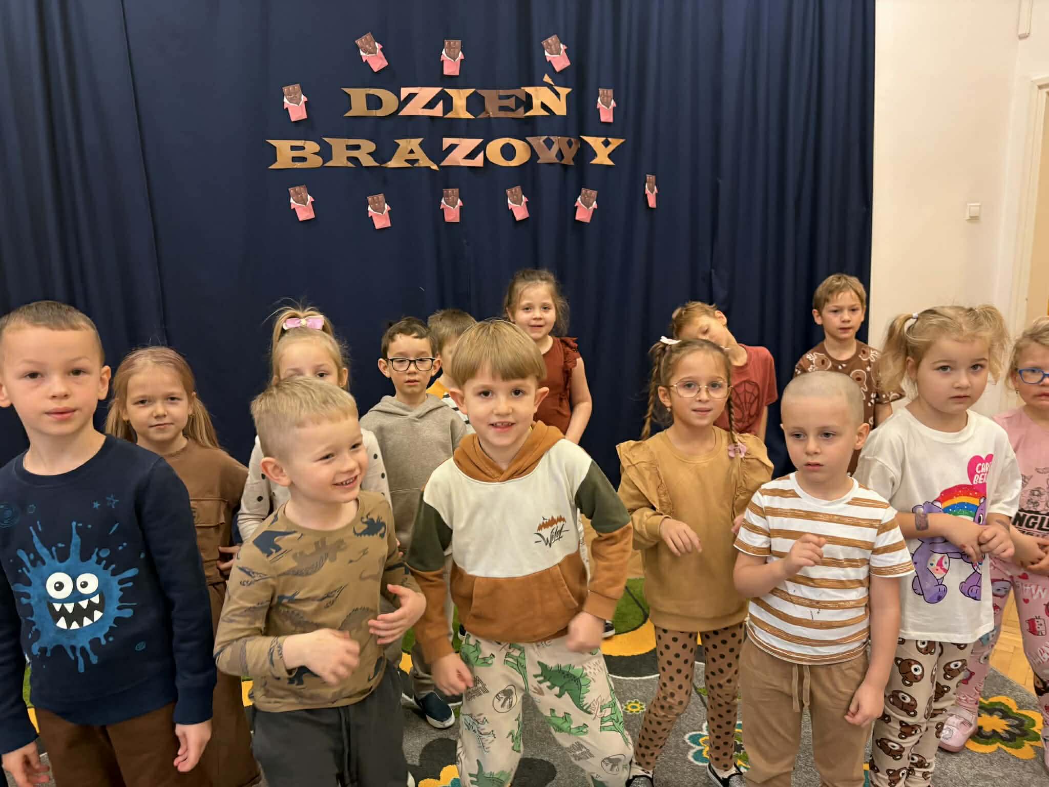 W naszym przedszkolu obchodziliśmy Dzień Brązowy. Dzieci przyszły ubrane w brązowe elementy stroju i odkrywały, gdzie w przyrodzie występuje ten kolor — m.in. w kasztanach, korze drzew czy czekoladzie. Przedszkolaki brały udział w zabawach sensorycznych z jesiennymi naturalnymi materiałami, wyszukiwały brązowe przedmioty w sali oraz stworzyły prace plastyczne w odcieniach brązu. Był to dzień pełen radości, zabawy i utrwalania znajomości koloru. Na zakończenie dnia dzieci spróbowały brązowych przekąsek, takich jak pełnoziarniste chrupki, rodzynki czy herbatniki, rozmawiając o zdrowym odżywianiu.