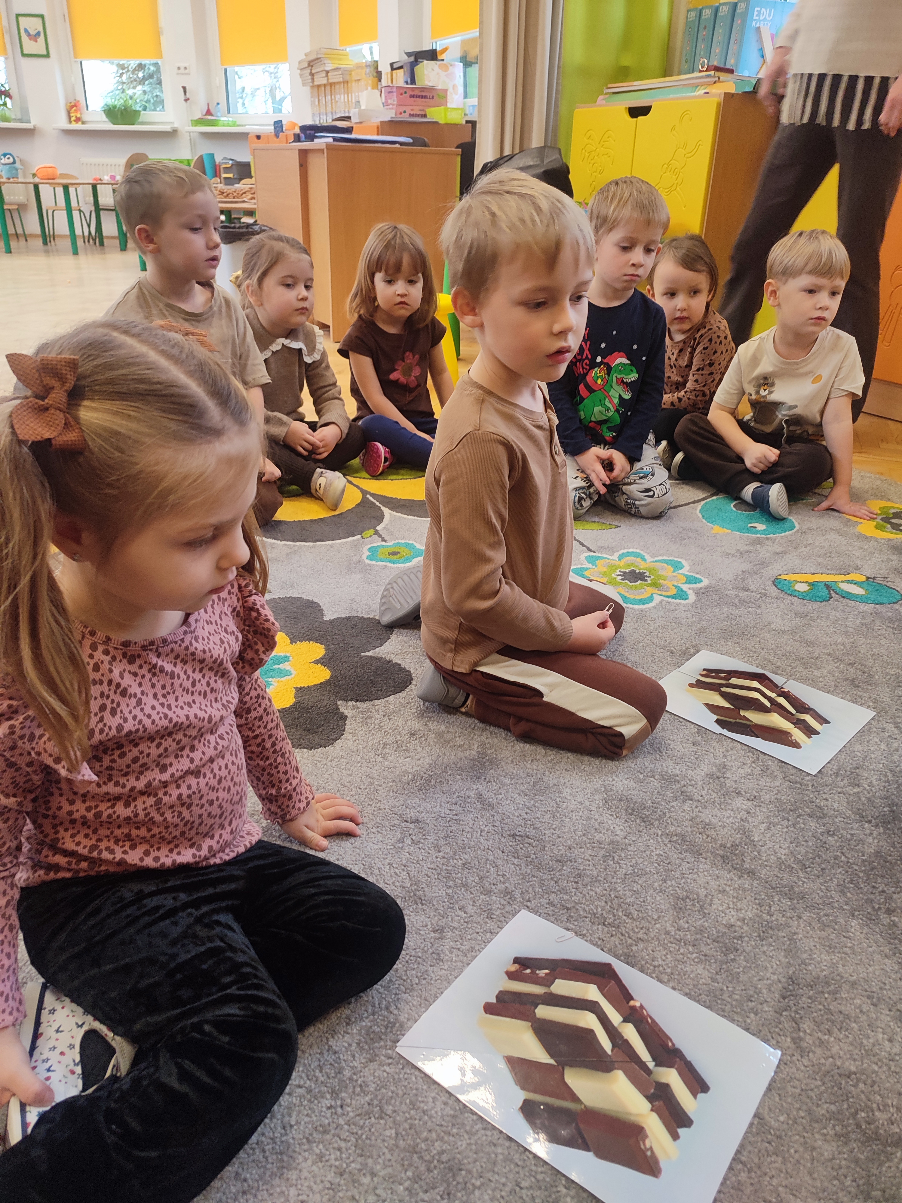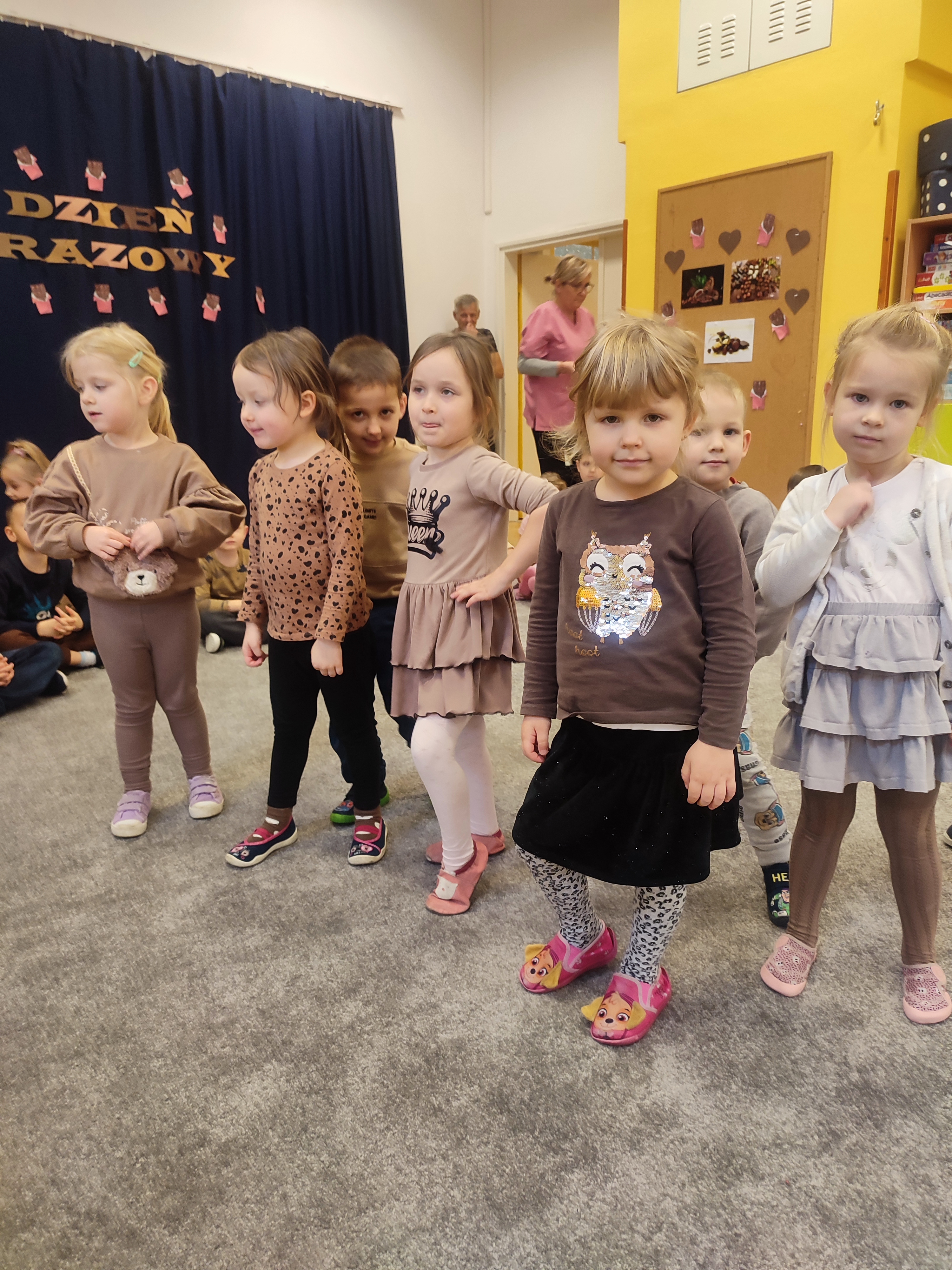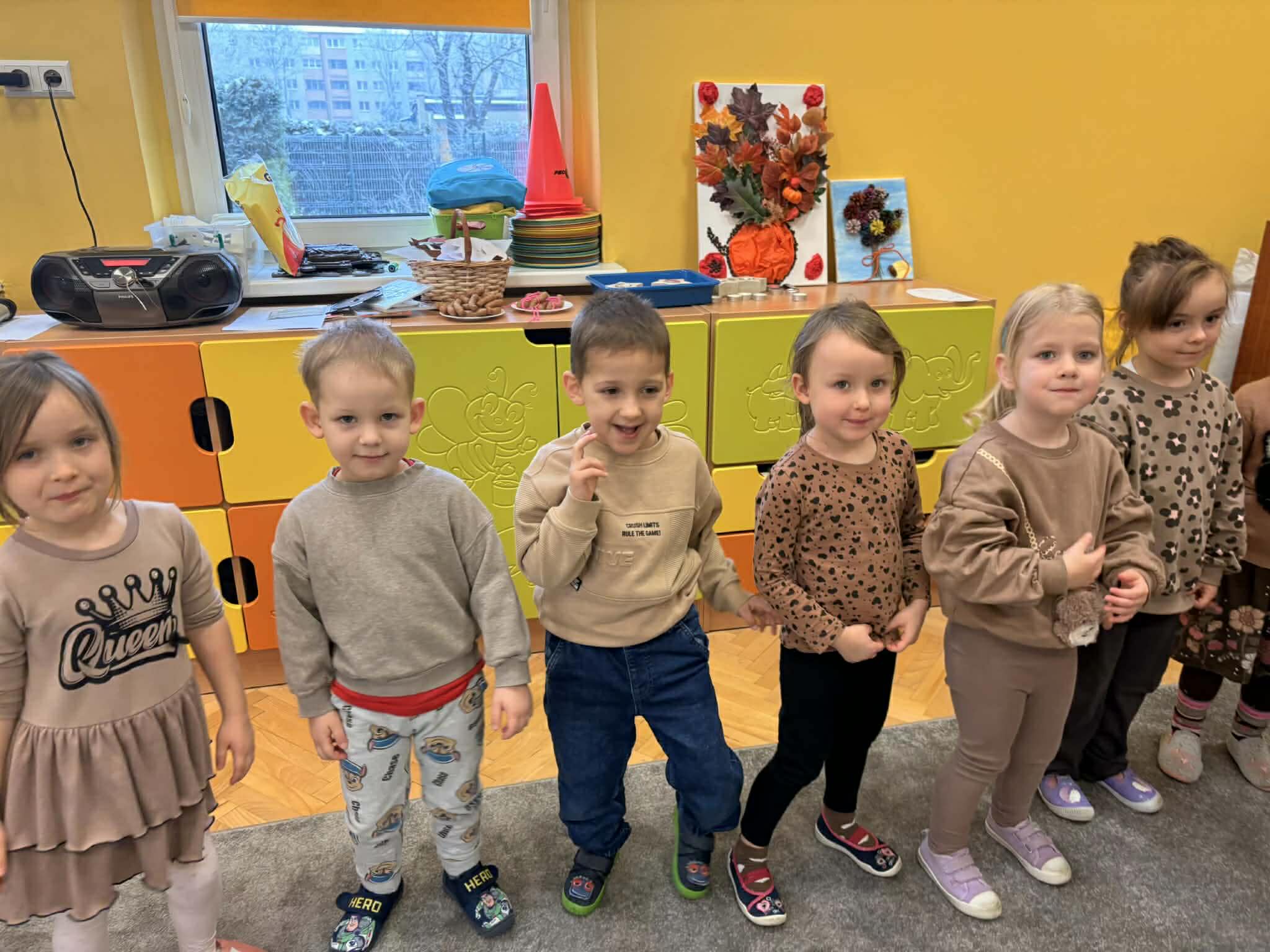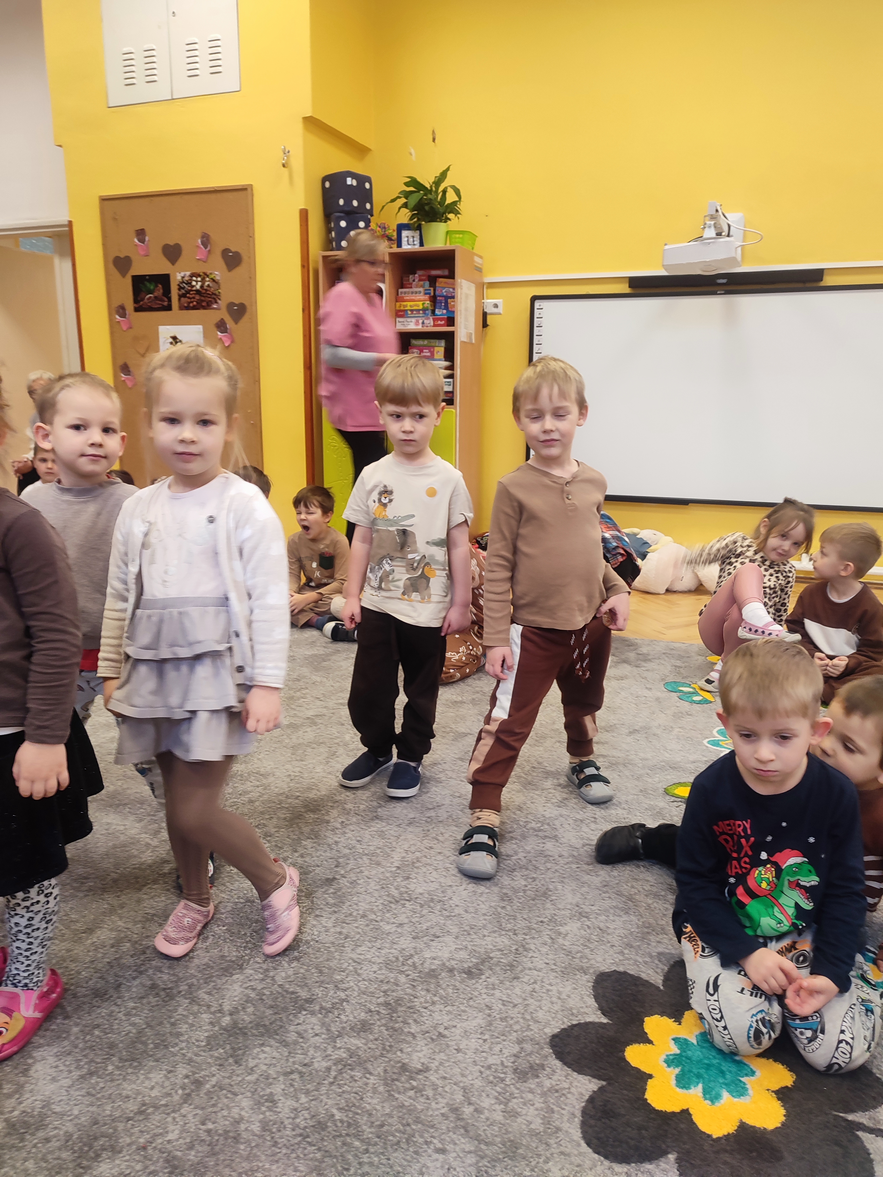 W naszym przedszkolu obchodziliśmy Dzień Brązowy. Dzieci przyszły ubrane w brązowe elementy stroju i odkrywały, gdzie w przyrodzie występuje ten kolor — m.in. w kasztanach, korze drzew czy czekoladzie. Przedszkolaki brały udział w zabawach sensorycznych z jesiennymi naturalnymi materiałami, wyszukiwały brązowe przedmioty w sali oraz stworzyły prace plastyczne w odcieniach brązu. Był to dzień pełen radości, zabawy i utrwalania znajomości koloru. Na zakończenie dnia dzieci spróbowały brązowych przekąsek, takich jak pełnoziarniste chrupki, rodzynki czy herbatniki, rozmawiając o zdrowym odżywianiu.