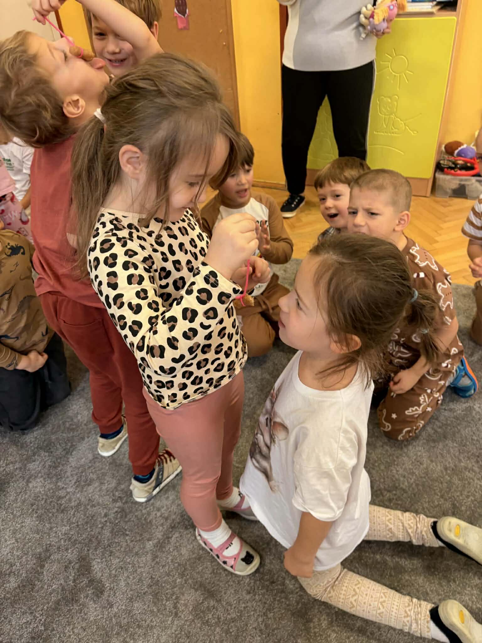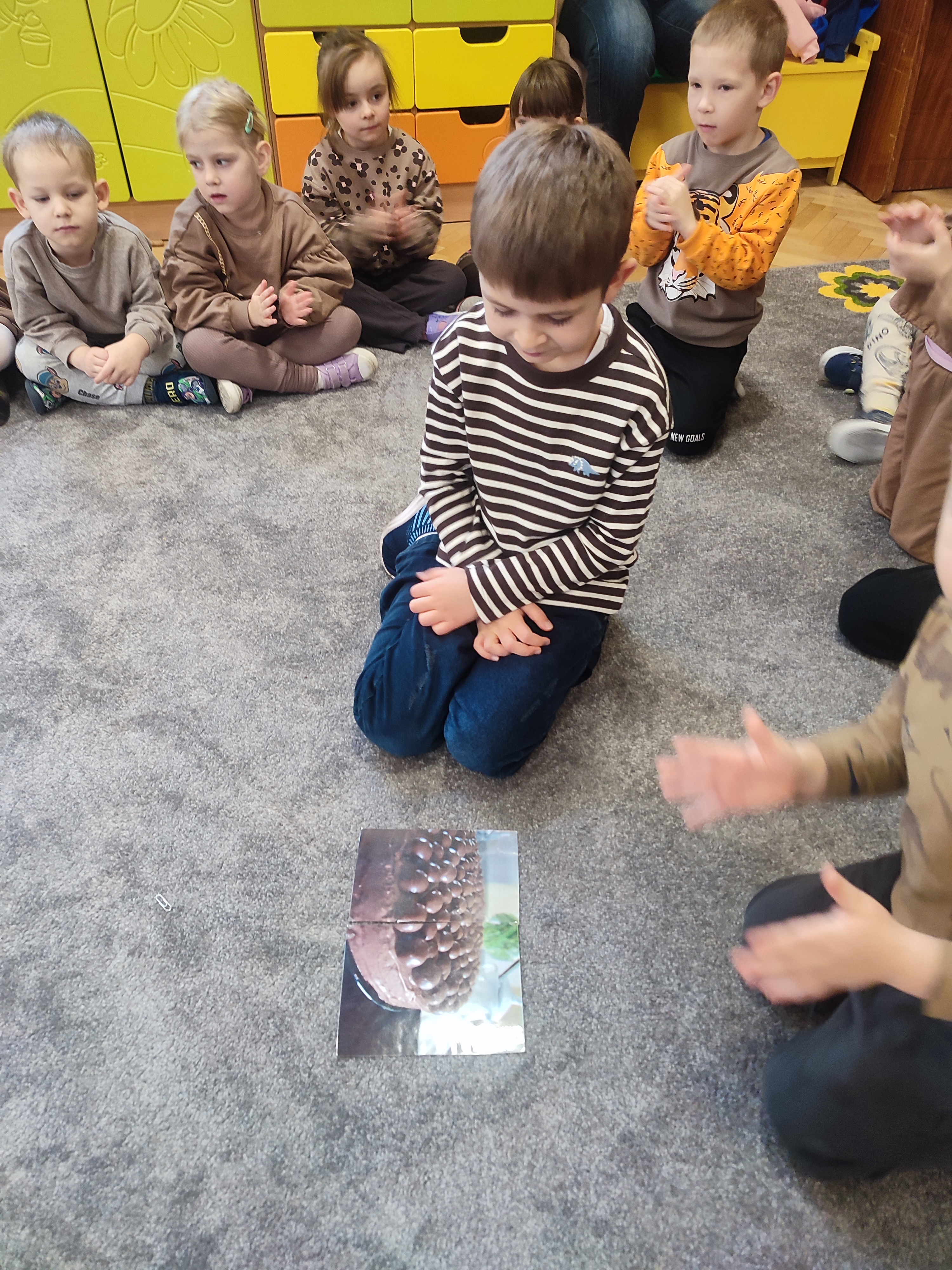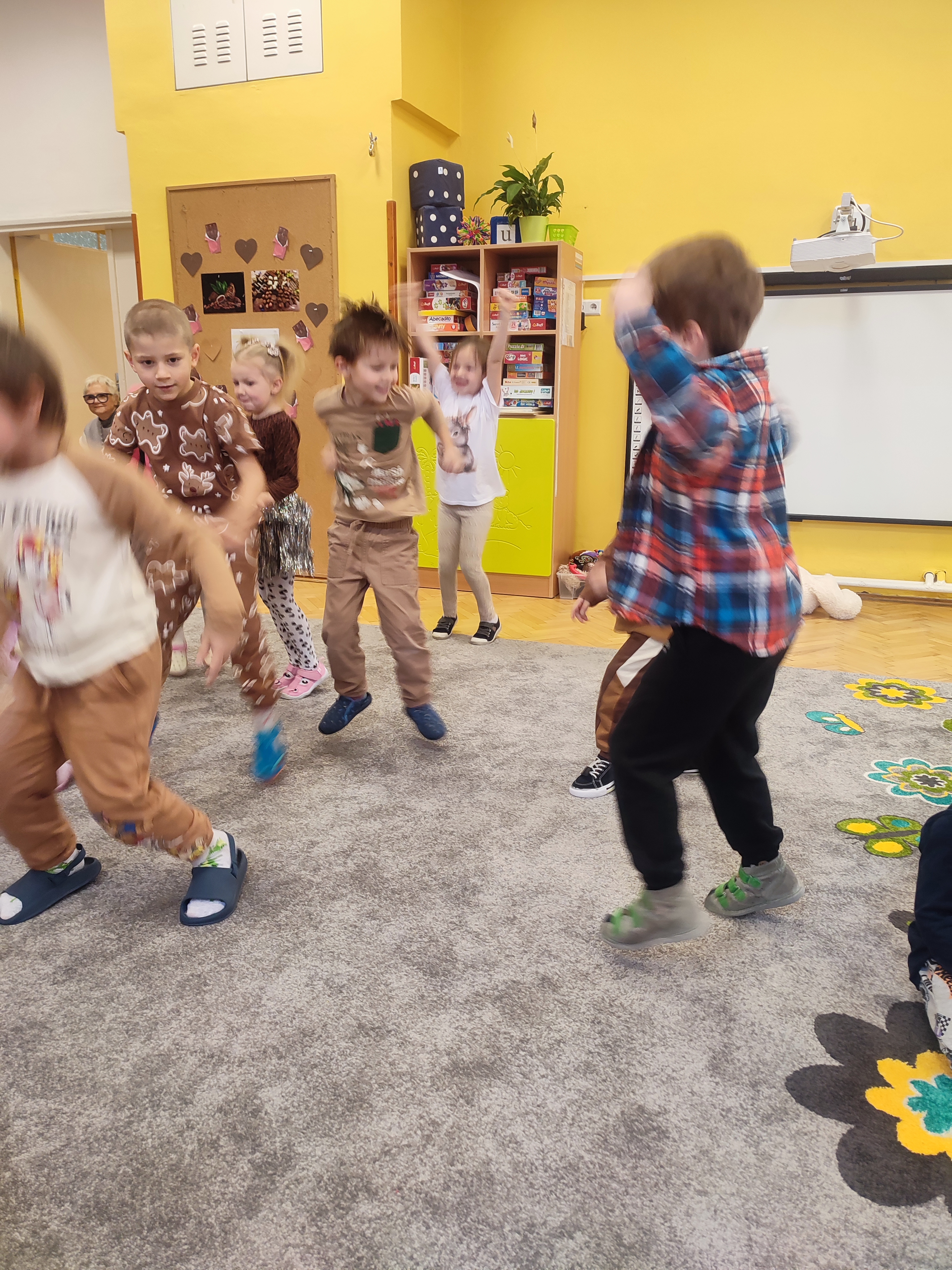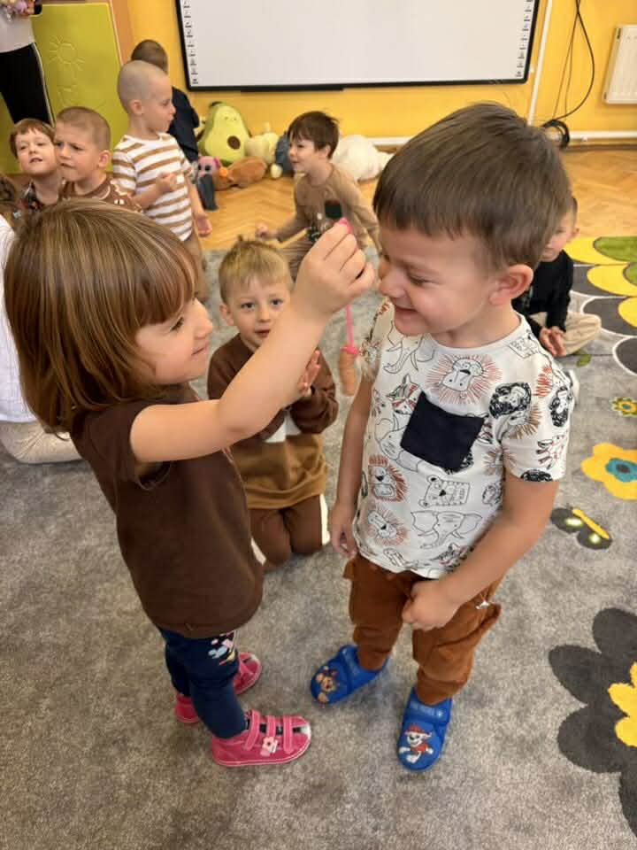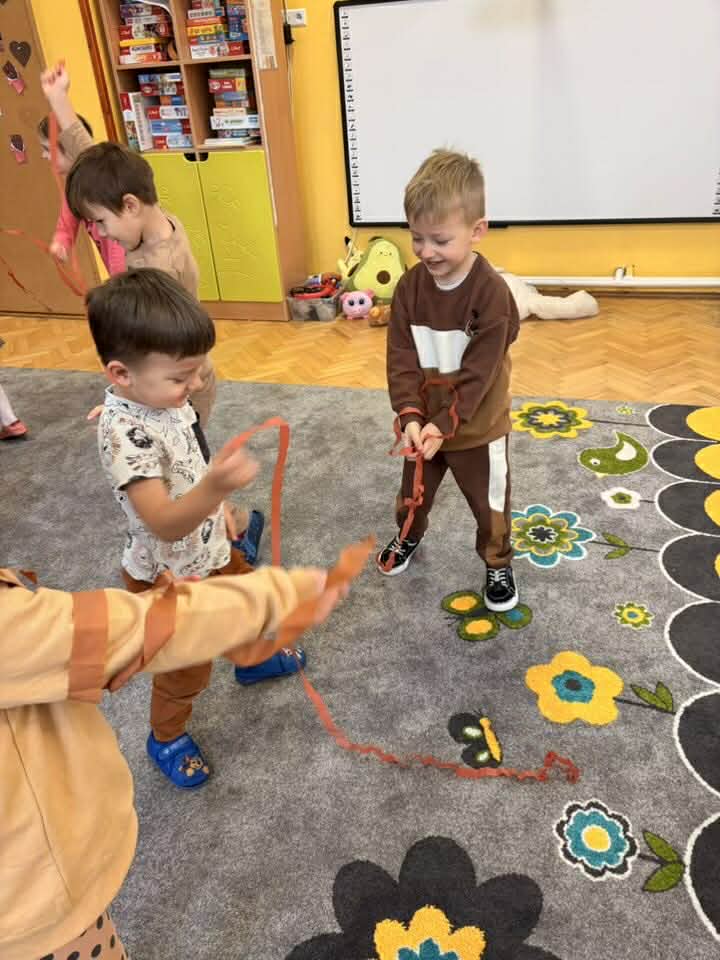 W naszym przedszkolu obchodziliśmy Dzień Brązowy. Dzieci przyszły ubrane w brązowe elementy stroju i odkrywały, gdzie w przyrodzie występuje ten kolor — m.in. w kasztanach, korze drzew czy czekoladzie. Przedszkolaki brały udział w zabawach sensorycznych z jesiennymi naturalnymi materiałami, wyszukiwały brązowe przedmioty w sali oraz stworzyły prace plastyczne w odcieniach brązu. Był to dzień pełen radości, zabawy i utrwalania znajomości koloru. Na zakończenie dnia dzieci spróbowały brązowych przekąsek, takich jak pełnoziarniste chrupki, rodzynki czy herbatniki, rozmawiając o zdrowym odżywianiu.
