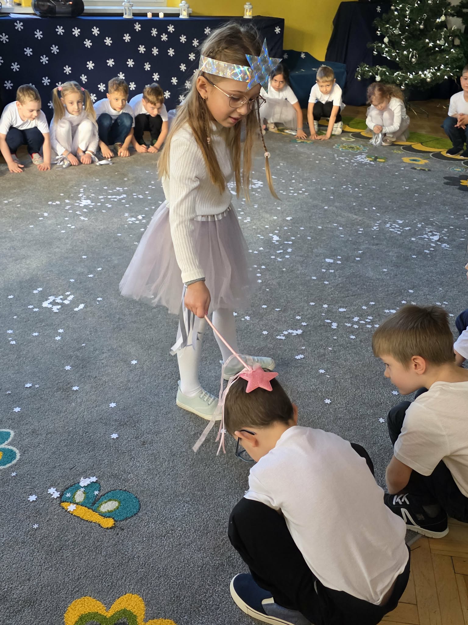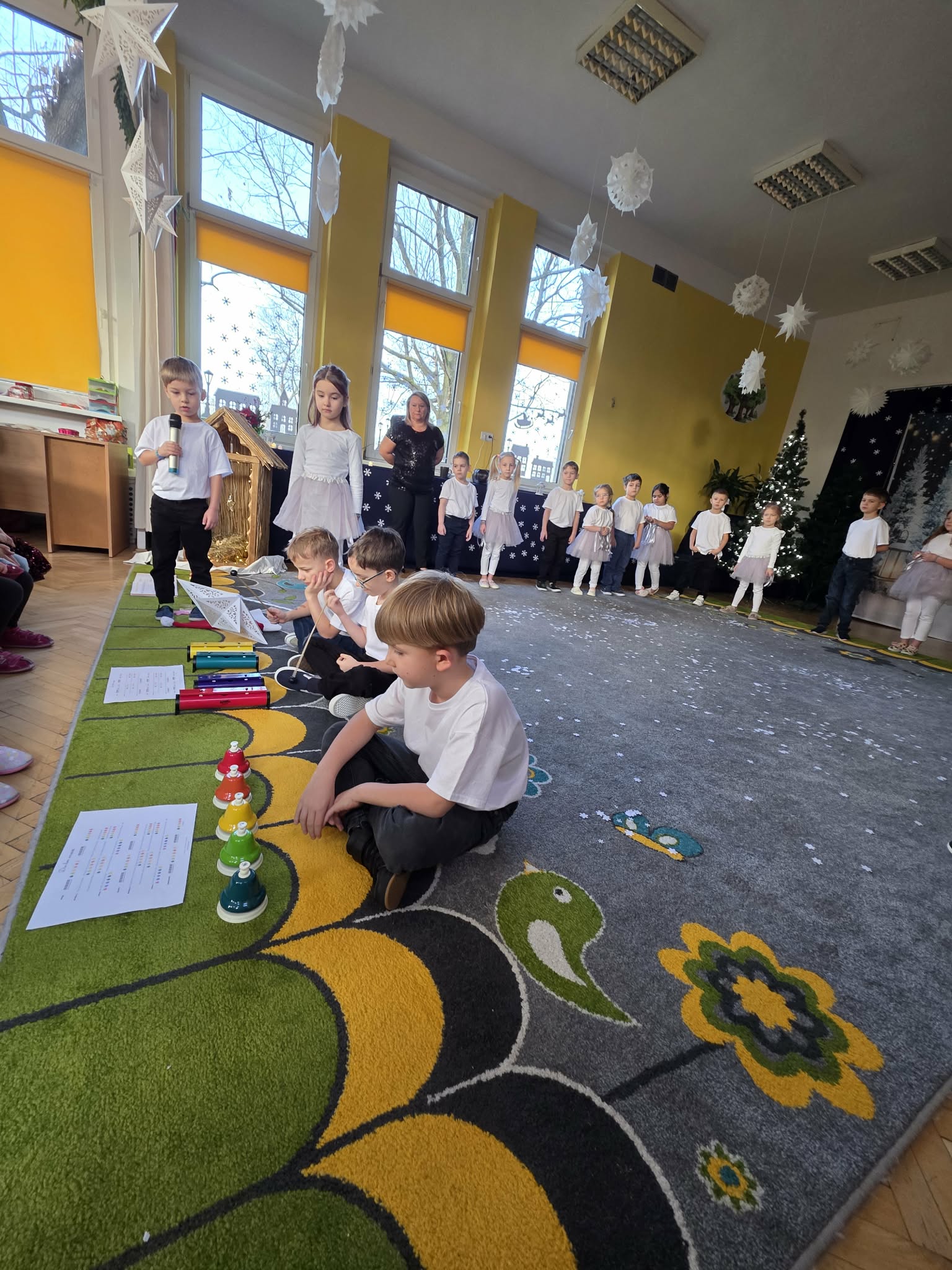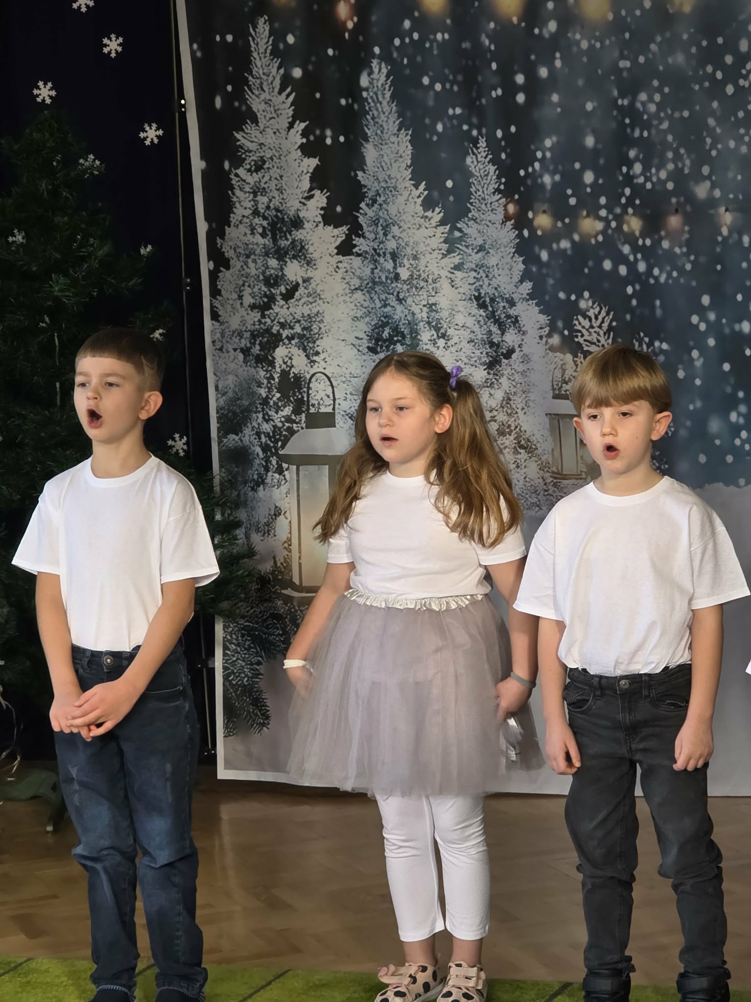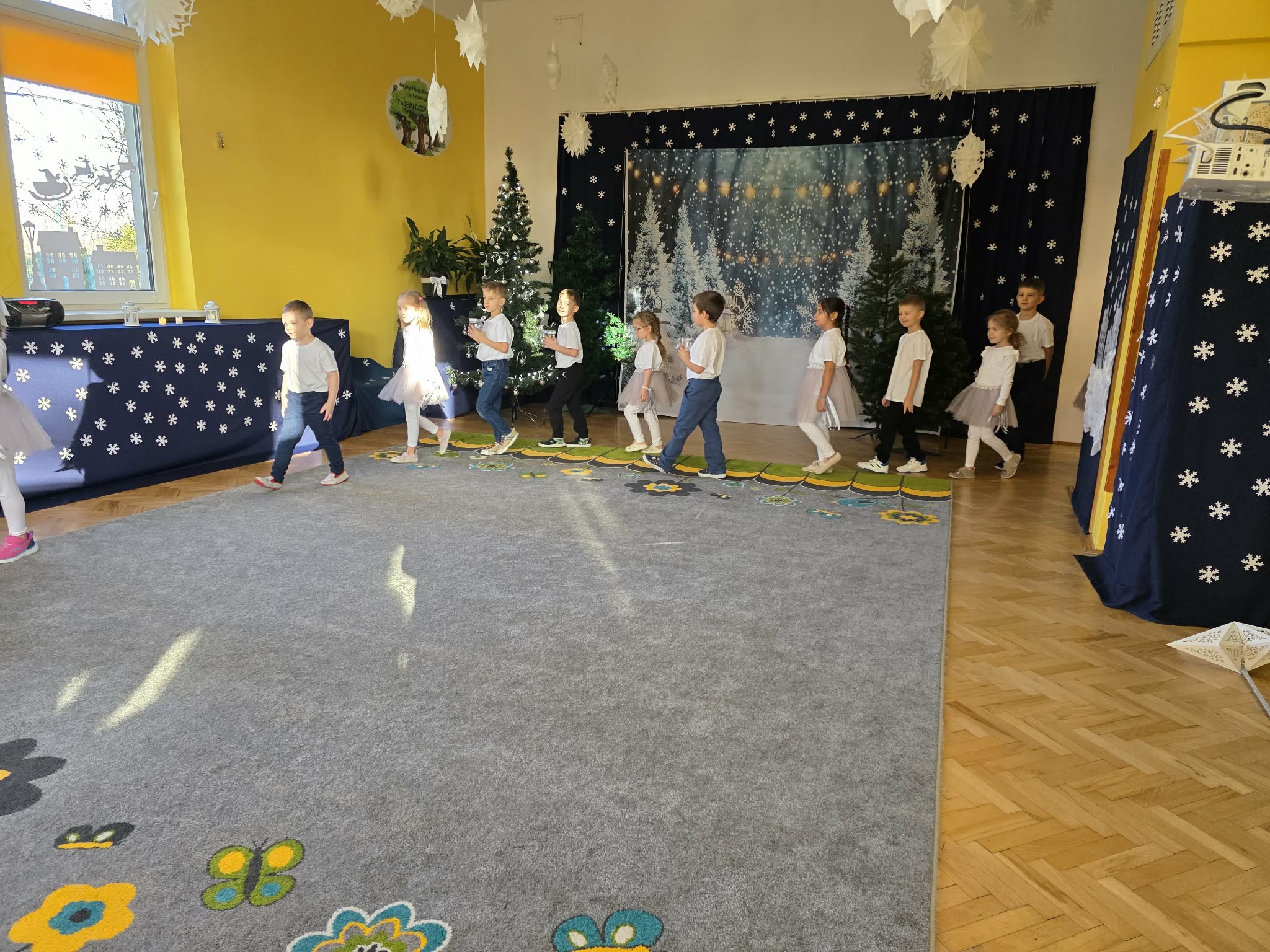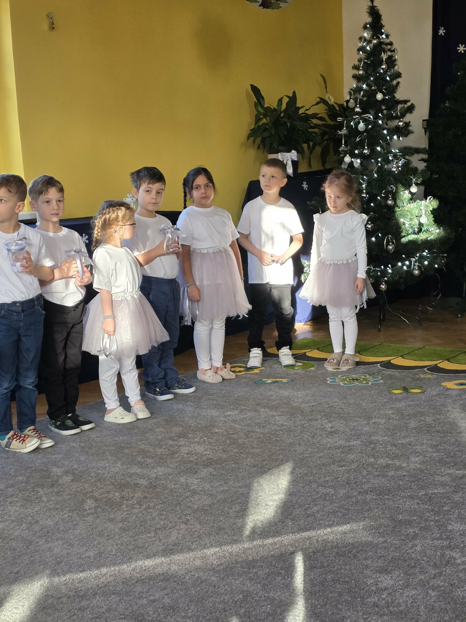 Dzieci z grupy Motylki zaprezentowały piękne jasełka, które na długo pozostaną w naszej pamięci. Wyjątkowy występ prowadziła Gwiazdka, niosąca radość i miłość, która przeniosła widzów przez świąteczną opowieść i wprowadziła wszystkich w niezwykły klimat Świąt Bożego Narodzenia. Mali artyści z ogromnym zaangażowaniem wcielili się w swoje role, zachwycając publiczność śpiewem oraz grą aktorską. Przedstawienie było bardzo wzruszające i poruszające serca – pełne ciepła, emocji i świątecznego przesłania. Występ Motylków przypomniał nam o tym, co w Świętach najważniejsze: miłości, dobroci i byciu razem. Serdecznie gratulujemy dzieciom wspaniałego występu oraz dziękujemy wszystkim, którzy przyczynili się do przygotowania tego wyjątkowego wydarzenia.